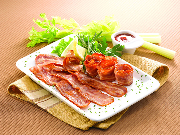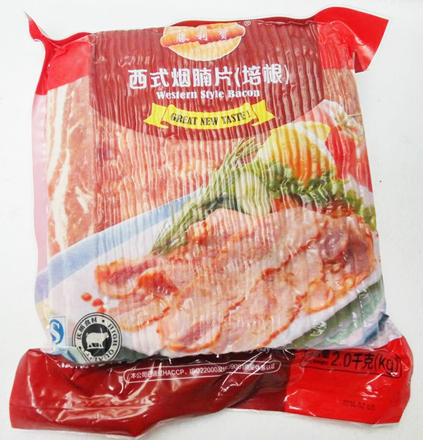 产品配料: 猪肉、水、食盐、大豆蛋白粉、马铃薯淀粉、白砂糖、复合香辛料、食品添加剂(卡拉胶、谷氨酸钠、六偏磷酸钠、三聚磷酸钠、焦磷酸钠、D-异抗坏血酸钠、亚硝酸钠、柠檬酸、红曲红)、食用香精